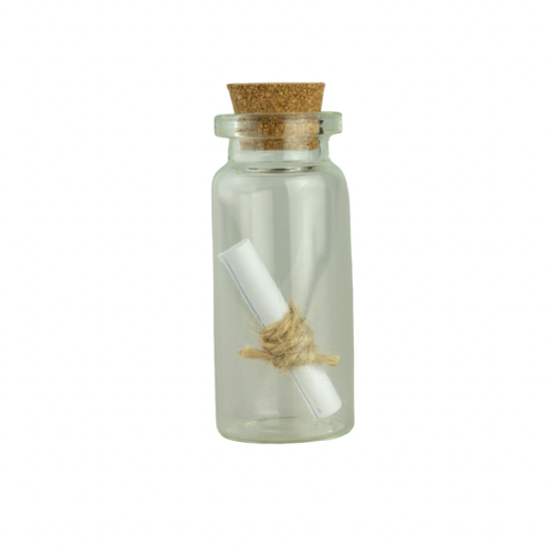 Discover the charm and nostalgia of Message in a Bottle! This mini glass bottle holds a faux vintage paper, perfect for expressing heartfelt sentiments or adding a unique touch to home decor. With a cork lid, metal ring, and twine tie, it's perfect for invitations, events, or a simple note.